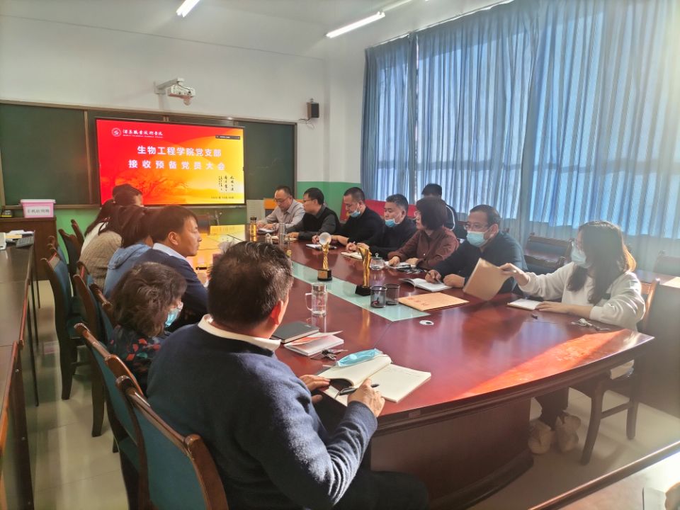 12月6日下午,生物工程学院党支部在逸夫楼315会议室通过线上线下结合召开预备党员接收大会,会议由党支部专职副书记张涛主持。生物工程学院党支部全体教师党员、6名学生发展对象参加本次会议。