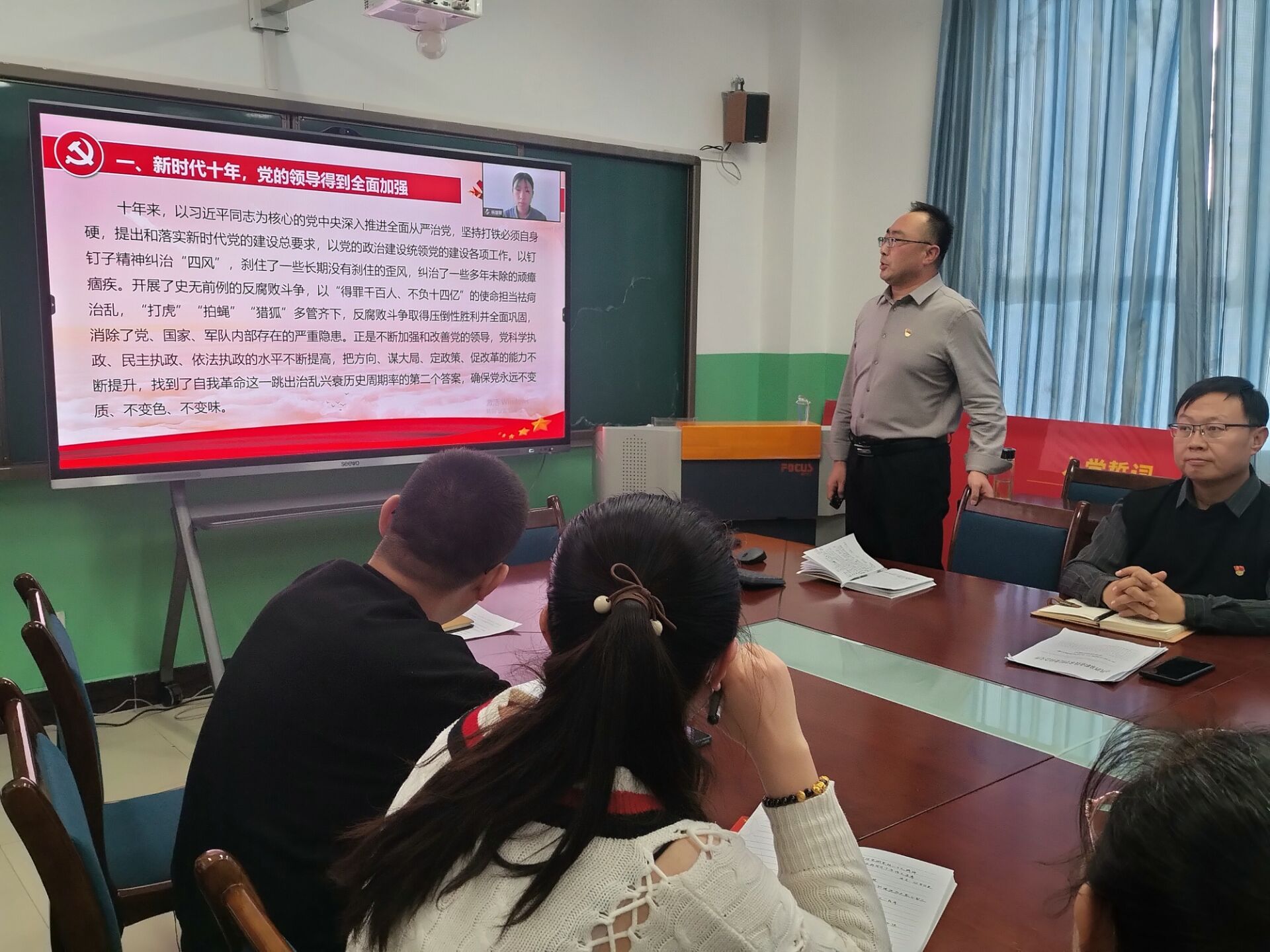 会后预备党员和全体党员同上党课,党课由柳立新同志以“学习宣传贯彻党的二十大精神、深刻认识新时代十年伟大变革”为题进行宣讲。他从“新时代十年,党的领导得到全面加强”新“时代十年,开辟马克思主义中国化新境界”“新时代十年,谱写了党和人民团结奋斗的新篇章”“新时代十年,成功推进和拓展了中国式现代化”“新时代十年,激发了科学社会主义的时代活力”等五个方面进行全方位阐述。
