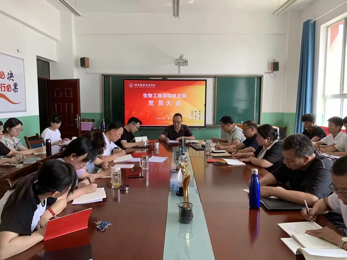 7月7日下午,生物工程学院党支部在逸夫楼315会议室召开7月份党员大会、专题党课及主题党日活动,会议由党支部书记柳立新主持。生物工程学院党支部全体教师党员、5名学生发展对象参加本次会议。