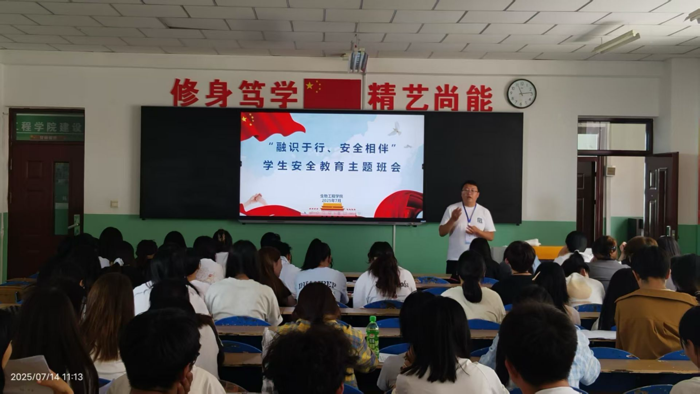 为深入贯彻落实学校《关于做好2025年暑期学生安全教育管理工作的通知》精神,切实增强学生安全防范意识和自我保护能力,确保全体学生度过一个平安、健康、充实的暑假,生物工程学院各班于近期集中召开主题为“融识于行、安全相伴”的学生安全教育主题班会。班会由班主任主持,全体在校学生参加。