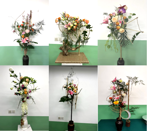 本次比赛有7组选手参赛,严格按照世界技能大赛的评价指标,参赛选手在60分钟内根据自己设计的主题选择相应的花材、花器进行花艺设计,同时从总体思路、技能要点、项目成果和项目创新等方面进行同步介绍。整个竞赛过程组织严密、井然有序,参赛选手沉着冷静、积极投入、操作娴熟。评委从技能水平、职业素养、应用价值、团队合作、创新创意等五个方面对作品进行综合评判。