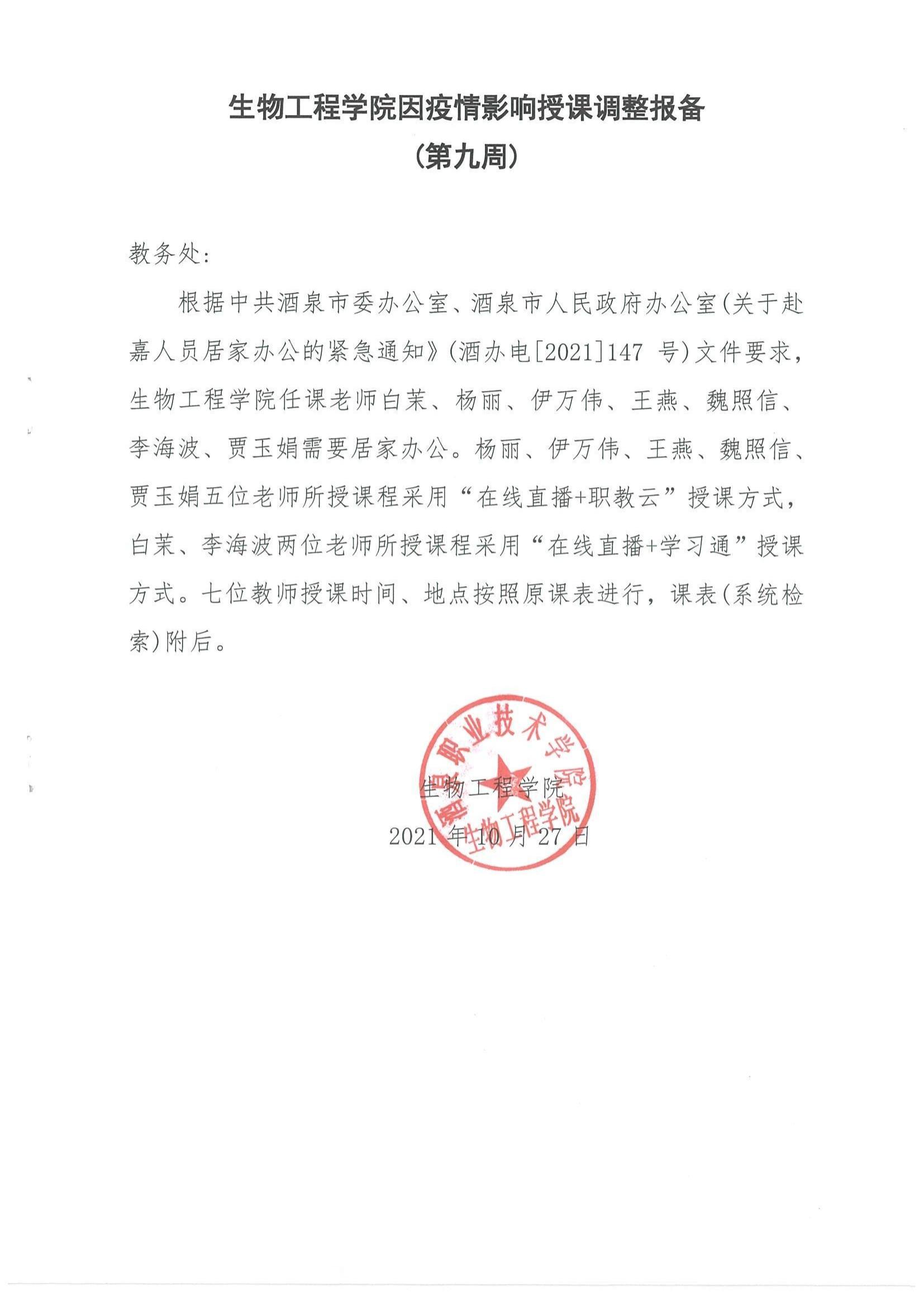 生物工程学院因疫情影响授课调整报备