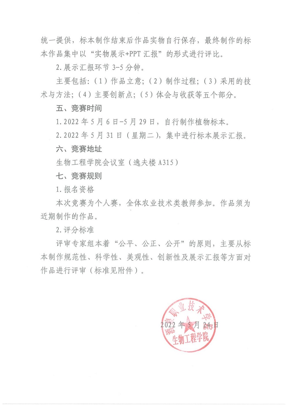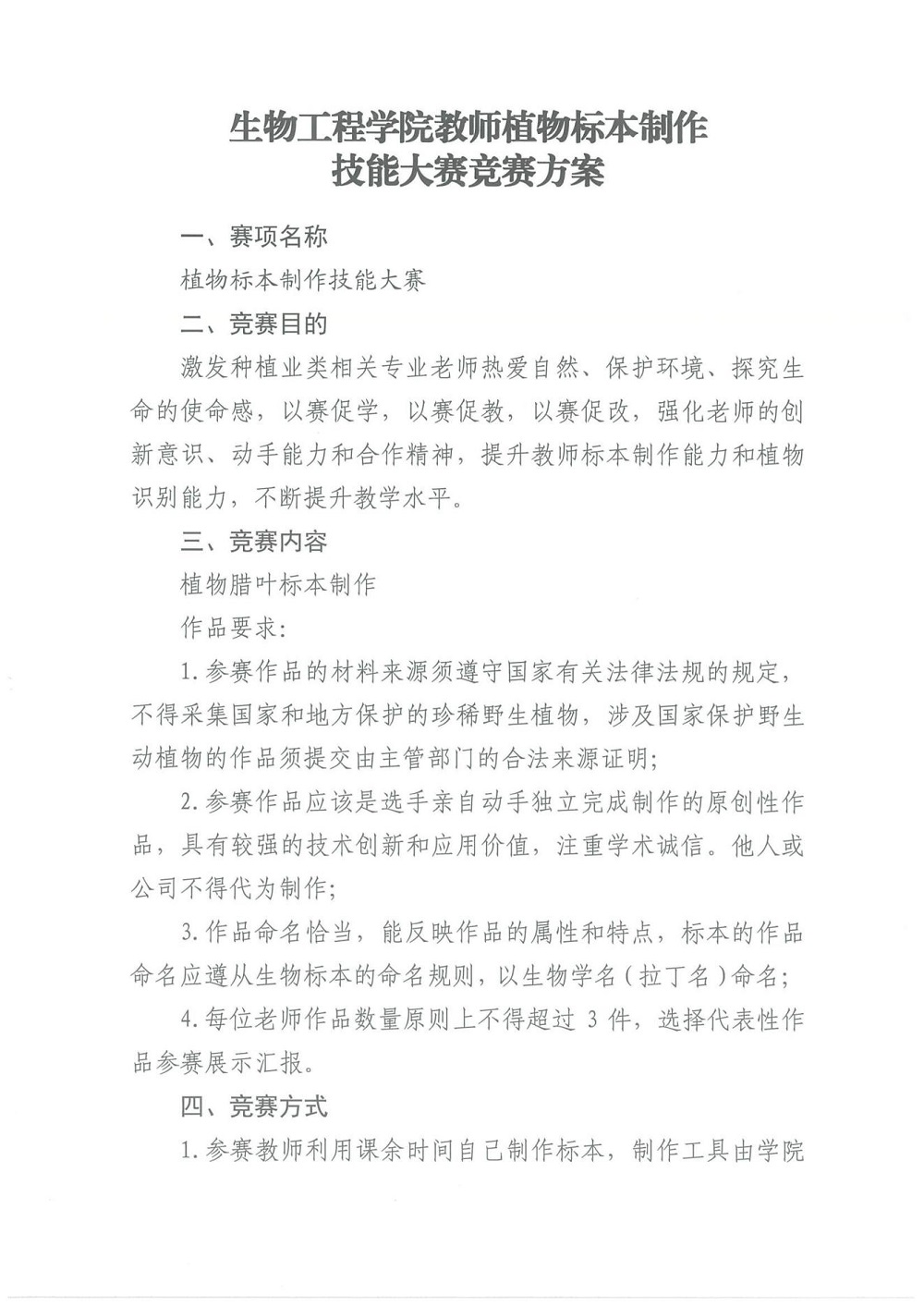 生物工程学院教师植物标本制作技能大赛竞赛方案